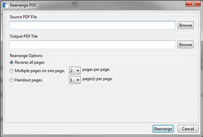 Tính năng này cho phép bạn thay đổi thứ tự các trang trong file PDF. Bạn có thể đảo ngược thứ tự tất cả các trang (Reverse all page) hoặc sắp xếp nhiều trang thành một trang (Multiple pages on one page).
