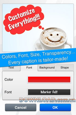 Ứng dụng cung cấp công cụ để thêm hộp thoại văn bản vào ảnh và cho phép chỉnh sửa nội dung theo ý muốn.