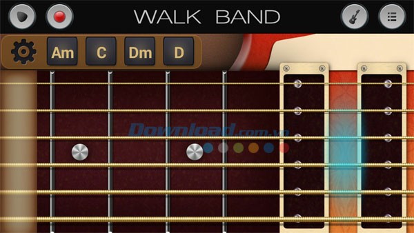 - Chơi guitar trên Walk Band: Hoàn toàn có thể! Walk Band hỗ trợ chơi guitar với chế độ điều chỉnh dây, chơi đơn và cung cấp 3 loại âm thanh guitar khác nhau. Ứng dụng cũng tích hợp khả năng ghi âm, phát lại và chia sẻ âm thanh.