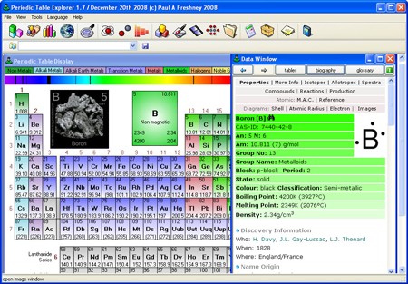 Đối với những nguyên tố không có hình ảnh, phần mềm sẽ hiển thị dấu hỏi hoặc hình ảnh của nhà khoa học đã phát hiện ra nguyên tố đó (do không phải tất cả các nhà khoa học đều có ảnh chân dung). Để tìm hiểu sâu hơn về một nguyên tố, bạn chỉ cần nhấp chuột vào nó, một cửa sổ Data Window sẽ mở ra, cung cấp các thông tin chi tiết như trọng lượng, nhiệt độ nóng chảy, trạng thái, nhóm nguyên tố, vị trí trong bảng,... rất hữu ích cho cả học sinh và giáo viên.