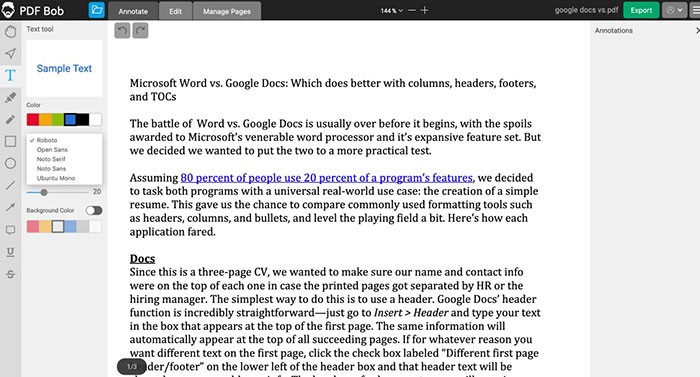 Thao tác thêm, xoay hoặc chú thích các trang tài liệu PDF cũng trở nên đơn giản với PDFescape.