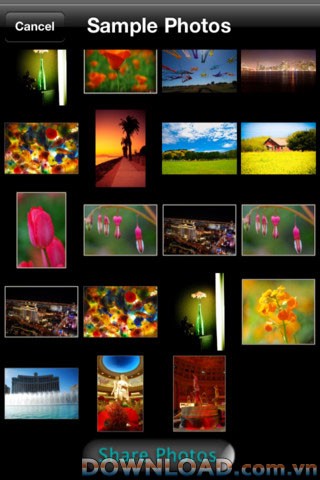 Chia sẻ khoảnh khắc đẹp với bạn bè và người thân qua các nền tảng mạng xã hội phổ biến như Facebook, Twitter, Flickr, hoặc gửi trực tiếp qua Email.