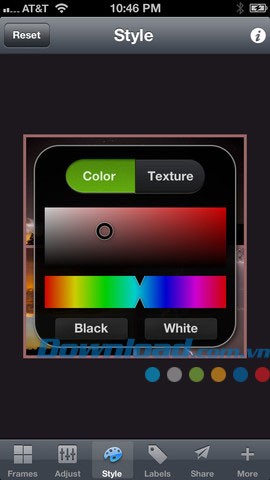 Thay vì sử dụng một khối màu duy nhất, ứng dụng cho phép lựa chọn nhiều kiểu khác nhau để áp dụng lên khung ảnh.