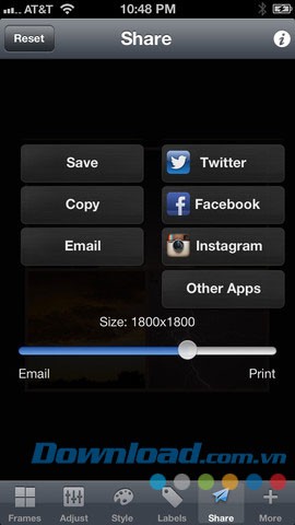 Việc chia sẻ ảnh trở nên đơn giản hơn bao giờ hết thông qua Email, SMS, Facebook, Twitter, Instagram, Dropbox và nhiều mạng xã hội khác.