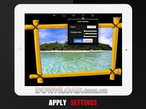 Với Photo Frame, việc cá nhân hóa những bức ảnh kỷ niệm trở nên đơn giản hơn bao giờ hết. Bạn có thể biến iPad của mình thành một khung ảnh kỹ thuật số sống động.