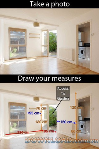 Ứng dụng cho phép người dùng chụp ảnh và trực tiếp vẽ kích thước lên trên hình ảnh một cách dễ dàng.