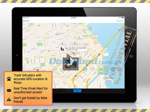 Ứng dụng có khả năng ghi lại hình ảnh và vị trí của những đối tượng cố gắng truy cập trái phép vào dữ liệu khi nhập sai mã PIN.