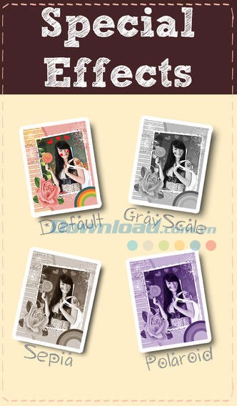 Người dùng có thể dễ dàng thêm các hiệu ứng ảnh cơ bản như Gray Scale, Sepia và Polaroids để tạo điểm nhấn cho mỗi bức hình.