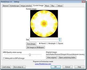 Ứng dụng cung cấp tính năng chụp lại và lưu trữ các hình ảnh được tạo ra với độ phân giải cao. Bạn có thể lưu chúng vào một tệp tin hoặc sử dụng trực tiếp làm hình nền cho màn hình desktop.