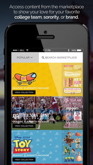 Đừng bỏ lỡ trang Marketplace của Photofy, nơi bạn có thể cập nhật liên tục các nội dung mới, cả miễn phí và có bản quyền, từ những họa sĩ nổi tiếng, cũng như các thương hiệu lớn như Disney / Disney Pixar, Shrek, Popeye…