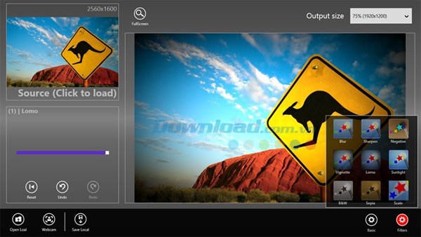 Sau khi hoàn tất quá trình chỉnh sửa, hãy chọn Output Size để xác định kích thước của ảnh hoàn thiện trước khi chia sẻ. Nhấn Save Local để lưu ảnh về máy tính hoặc Share to Facebook để chia sẻ trực tiếp lên mạng xã hội.