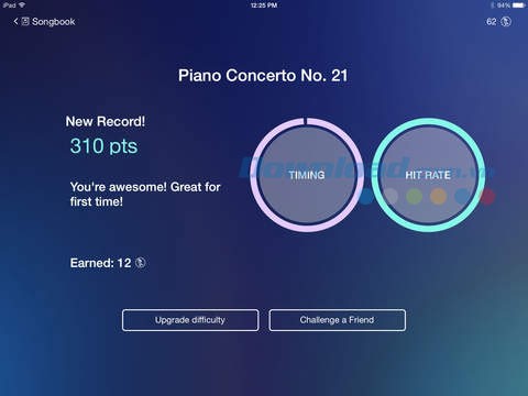 Ứng dụng cung cấp 3 mức độ thử thách khác nhau cho mỗi bản nhạc, đáp ứng nhu cầu của người mới bắt đầu, người chơi ở trình độ trung bình và người chơi chuyên nghiệp.