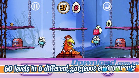- Người chơi sẽ được trải nghiệm 60 màn chơi đa dạng, được thiết kế trong 6 môi trường khác nhau, với đồ họa tươi sáng và lôi cuốn.