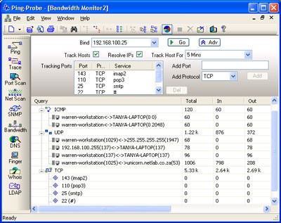Ping-Probe là một ứng dụng mạng mạnh mẽ, tích hợp nhiều tính năng hữu ích. Phần mềm này cung cấp tới mười công cụ chuyên nghiệp, bao gồm: Traceroute, TCP Port Scanner, Network Scanner, SNMP Browser, Bandwidth Monitor, DNS Client, Finger Client, Whois Client và LDAP Client.