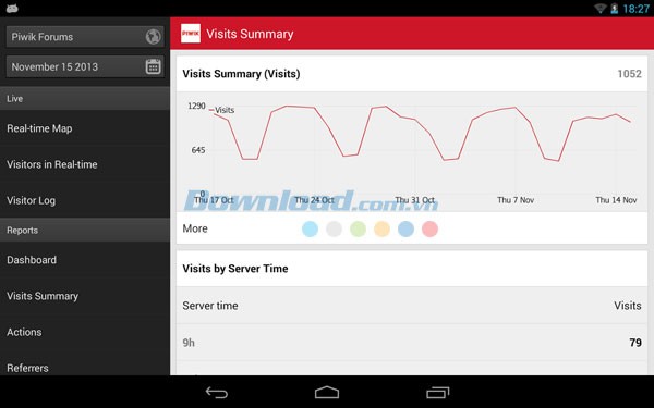 Ứng dụng Piwik Mobile dành cho hệ điều hành Android mang đến trải nghiệm tương đồng với phiên bản Piwik trên máy tính, cung cấp đầy đủ các tính năng hữu ích ngay trên thiết bị di động của bạn.