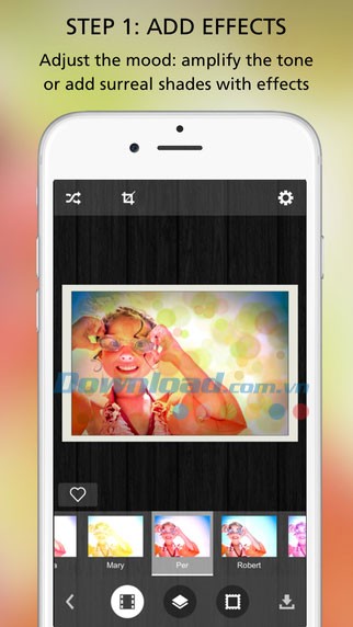Ứng dụng cho phép điều chỉnh hiệu ứng ảnh để thay đổi tâm trạng và cảm xúc, thêm các hiệu ứng chồng hình như Drama, Sparkle, Neon, Light Leaks, Grunge, thêm đường viền ảnh phù hợp với cá tính người dùng, thao tác vuốt để xử lý ảnh ngẫu nhiên, không yêu cầu sử dụng máy ảnh và cho phép chia sẻ ảnh trực tiếp lên Facebook hoặc qua email.