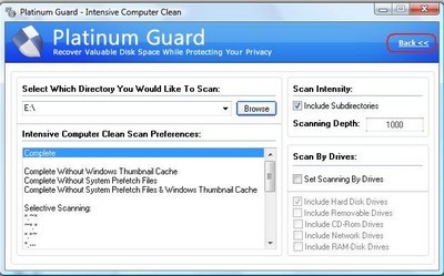 - Intensive Computer Clean: Cho phép bạn chọn các thư mục hoặc phân vùng ổ đĩa để dọn dẹp. Mặc định, Platinum Guard chỉ dọn dẹp phân vùng hệ thống (ổ C). Bạn có thể đánh dấu để quét dọn các phân vùng khác.