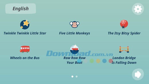Ngoài chức năng dạy chơi piano và học hát, ứng dụng còn mang đến một chương trình học tiếng Anh thông qua các bài hát vô cùng hấp dẫn và mang lại hiệu quả cao.