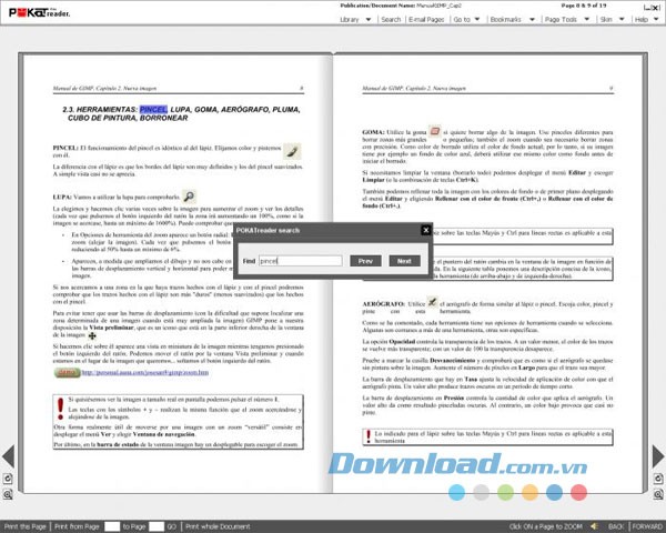 Ứng dụng còn hỗ trợ tính năng phóng to/thu nhỏ bằng thao tác chuột, cung cấp nhiều giao diện (skin) đẹp mắt và hình nền đa dạng, cũng như cho phép in ấn từng trang hoặc toàn bộ tài liệu.