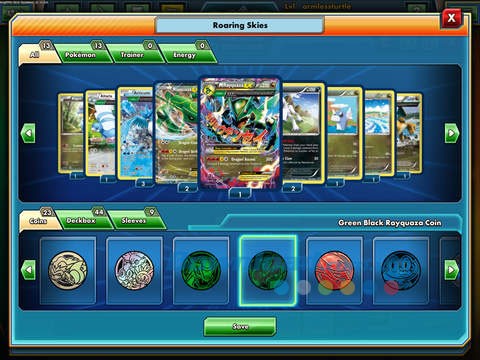 Ví dụ, một cách đơn giản để kiếm thêm lá bài năng lượng là mua một bộ bài theo chủ đề có chứa lá bài mà bạn cần. Bạn có thể dùng Trainer Token kiếm được trong khi chơi Pokemon TCG Online để truy cập cửa hàng và trao đổi bộ bài mới, chẳng hạn như bộ bài chủ đề Storm Rider với mức giá 500 token. Bộ bài này sẽ cung cấp cho bạn 9 lá bài năng lượng sấm sét, 8 lá bài năng lượng Mộc và thậm chí một lá bài năng lượng rồng kép đặc biệt bên cạnh 42 lá bài Trainer và Pokemon khác.