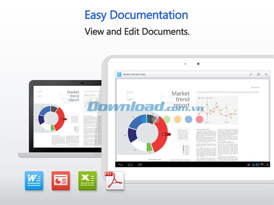 Bạn có đôi khi gặp vấn đề khi các biểu đồ slide show không hiển thị đầy đủ trên màn hình thiết bị di động? Polaris Office giải quyết vấn đề này, cho phép người dùng xem hầu hết các văn bản chính thức từ bộ ứng dụng Microsoft Office. Bây giờ, bạn có thể đọc và chỉnh sửa các văn bản quan trọng từ máy tính ngay trên thiết bị Android của mình.