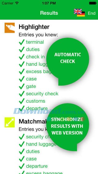 Việc đồng bộ hóa dữ liệu rất dễ dàng. Bạn có thể chuyển danh sách từ vựng đã tải hoặc đang luyện tập từ thiết bị di động sang máy tính cá nhân để tiếp tục học tập tại nhà.