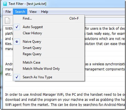 Chương trình này sẽ tiến hành lọc văn bản ngay lập tức, phản hồi theo thời gian thực khi bạn nhập từ khóa hoặc cụm từ tìm kiếm.