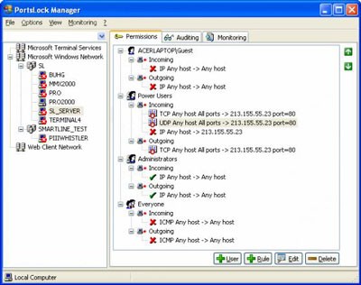PortsLock cung cấp khả năng kiểm soát chi tiết quyền truy cập của từng tài khoản người dùng đối với các cổng giao tiếp thuộc nhiều giao thức khác nhau, bao gồm HTTP, FTP, SMTP, POP3 và Telnet.