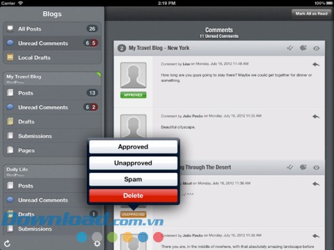 Posts for iPad giúp bạn dễ dàng theo dõi các bình luận trên bài viết của mình. Ứng dụng theo dõi các bình luận đã đọc và xử lý, đồng thời hiển thị các bình luận mới.