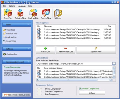 So với các phần mềm cùng chức năng như Powerpoint Shrink hay NXPowerLite, PPTminimizer tỏ ra vượt trội hơn hẳn. Hãy đăng ký và sử dụng chương trình miễn phí này để giải quyết những lo lắng về dung lượng ổ cứng hoặc bài trình diễn PowerPoint của bạn.