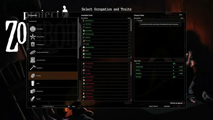 Một phương pháp hiệu quả để bắt đầu hành trình trong Project Zomboid là lựa chọn một nghề nghiệp nhất định. Việc này sẽ giúp người chơi xuất hiện với kỹ năng hotwire xe hơi đã được trang bị, loại bỏ nhu cầu nâng cấp kỹ năng sau này.