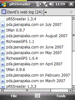 pRSSreader là một phần mềm ứng dụng hoàn toàn miễn phí, được thiết kế để đọc các định dạng RDF và RSS feeds trên các thiết bị Windows Mobile và Pocket PC.