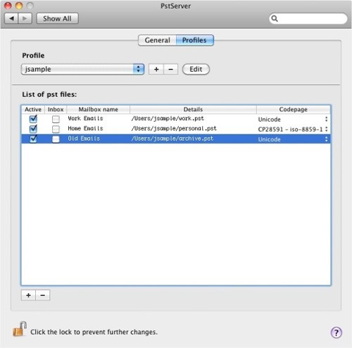Tất cả các thiết lập cấu hình đều được thực hiện thông qua một bảng điều khiển tùy chỉnh trong System Preferences Panel. Ứng dụng này còn cung cấp tính năng tạo nhóm các file .pst và gán tên người dùng cùng mật khẩu IMAP riêng biệt cho từng nhóm.