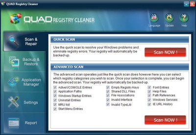QUAD Registry Cleaner được thiết kế để tự động xác định và quét toàn bộ các mục đăng ký không hợp lệ, các lối tắt bị hỏng, các phần mềm không cần thiết và các tập tin bị lỗi – những yếu tố tiềm ẩn gây ra nguy cơ cho máy tính và các sự cố bất ngờ.