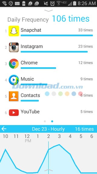 Ứng dụng cung cấp bản tổng hợp về tần suất sử dụng các ứng dụng trên điện thoại, bao gồm cả thời gian và số lần mở mỗi ứng dụng hàng ngày hoặc hàng tuần. Đây là công cụ hữu ích để bạn kiểm soát và điều chỉnh thói quen sử dụng thiết bị, tương tự như một “chế độ hạn chế” đối với smartphone.