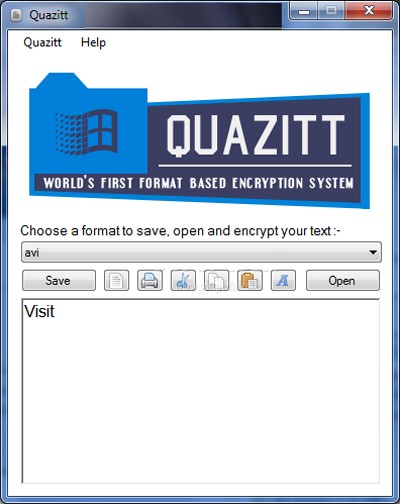 Quazitt là một ứng dụng phần mềm được thiết kế để hỗ trợ người dùng trong việc lưu trữ, mã hóa và giải mã các tập tin văn bản thuộc nhiều định dạng khác nhau, bao gồm MP3, WMA, GIF, PNG, và AVI.