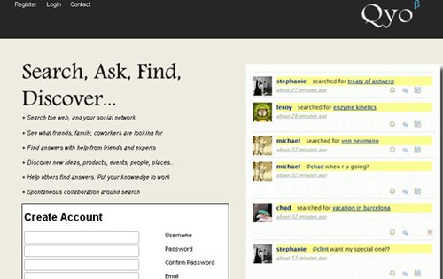 Cách thức hoạt động của Qyo khá trực quan: mỗi khi bạn truy cập trang web để tìm kiếm, bạn cũng sẽ thấy được các tìm kiếm gần đây của bạn bè. Bạn có thể bình luận hoặc trò chuyện về chúng, biến những tìm kiếm cá nhân thành những tương tác xã hội.