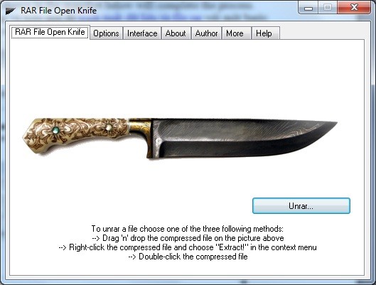 RAR File Open Knife là một công cụ nhỏ gọn, miễn phí, được thiết kế để trích xuất dữ liệu từ các file RAR một cách nhanh chóng và hiệu quả chỉ với một bước đơn giản. Biểu tượng hình con dao của công cụ này thể hiện rõ ràng tốc độ làm việc của nó – "Nhanh như cắt".