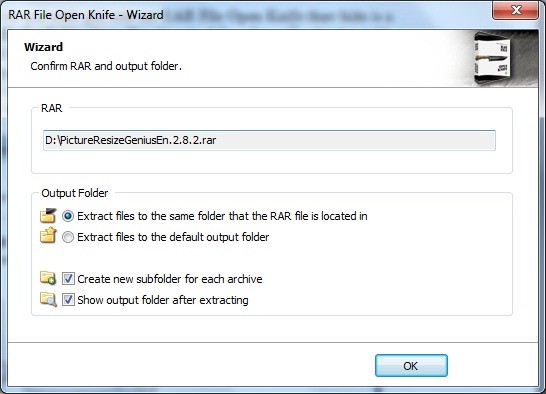 - Kích đúp vào file nén. RAR File Open Knife sẽ tự động được thiết lập làm chương trình mặc định cho tất cả các file RAR trong quá trình cài đặt.