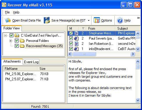 Phần mềm Recover My Email sẽ tiến hành quét và kiểm tra kỹ lưỡng file Microsoft Outlook PST của bạn. Phiên bản tải về cho phép người dùng xem trước các tin nhắn đã bị xóa.