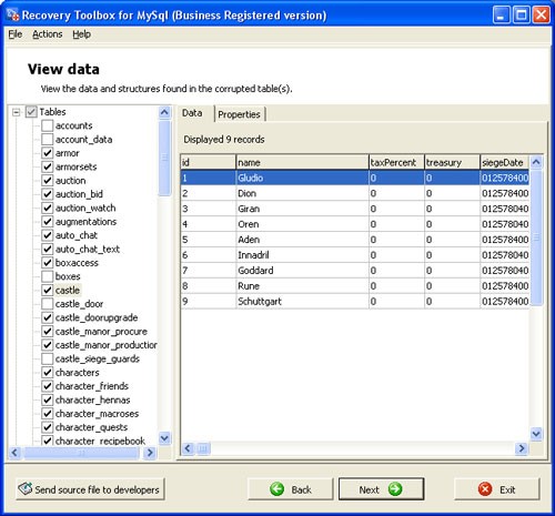 Phần mềm tương thích với định dạng cơ sở dữ liệu MyISAM. Sau khi khôi phục, dữ liệu có thể được lưu trữ dưới dạng script để sử dụng sau này hoặc được ghi trực tiếp trở lại máy chủ MySQL.