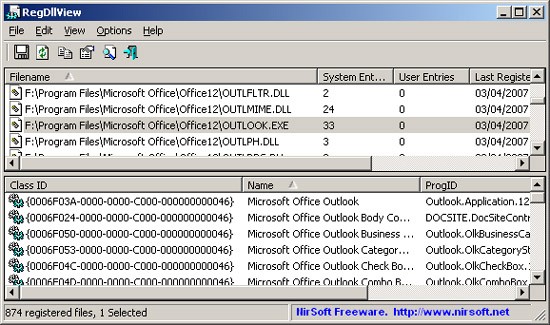 Với mỗi file đã được đăng ký, người dùng có thể dễ dàng kiểm tra thời điểm và ngày tháng đăng ký, cùng với danh sách chi tiết các entry đăng ký liên quan (CLSID/ProgID).