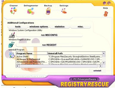 - Cleaner: Công cụ này sẽ quét và xác định các thành phần lỗi thời hoặc không hợp lệ trong registry, chẳng hạn như các mã ActiveX, file DLL chia sẻ không cần thiết. Danh sách các thành phần lỗi được liệt kê để người dùng lựa chọn sửa chữa một cách linh hoạt, có thể là từng phần hoặc toàn bộ.