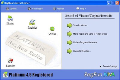 RegRun Security Suite hỗ trợ bảo vệ máy tính khỏi các cuộc tấn công từ virus, trojan, spyware, adware, rootkit và các loại phần mềm độc hại khác đang lan truyền trên mạng.