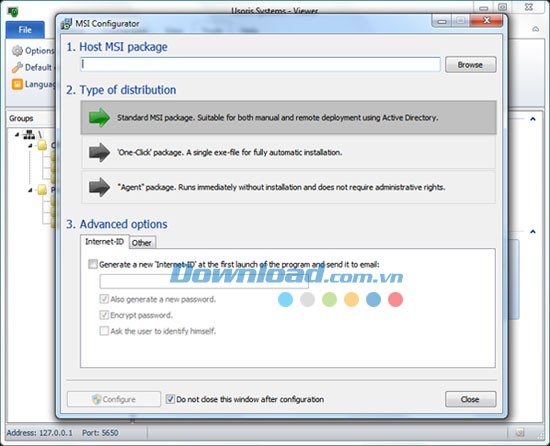 MSI Configurator là một công cụ có sẵn từ trình đơn Viewer. Nó cho phép bạn xây dựng phiên bản riêng của tập tin cài đặt để phân phối tiếp.