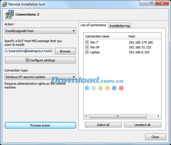 Bạn có thể cài đặt, gỡ bỏ cài đặt, nâng cấp, khởi động, dừng và khởi động lại máy chủ. Công cụ Remote Install cũng cung cấp một bản ghi cài đặt để bạn kiểm tra xem có điều gì sai xót không.