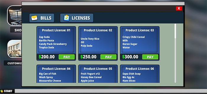 Trò chơi cung cấp một loạt các mặt hàng thiết yếu như bánh mì, sữa tươi, dầu ăn, nước giải khát Coca-Cola và nhiều loại đồ dùng phổ biến khác. Việc đạt được các cấp độ cao hơn trong trò chơi sẽ mở khóa toàn bộ danh mục sản phẩm.