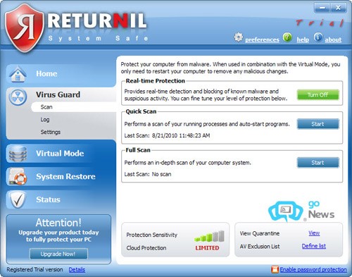 Xem thêm: Returnil System Safe 2011 - Bảo vệ hệ thống khỏi malware .