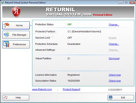 Returnil Virtual System 2008 Personal: Điểm nổi bật về tính năng
