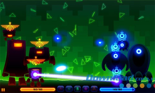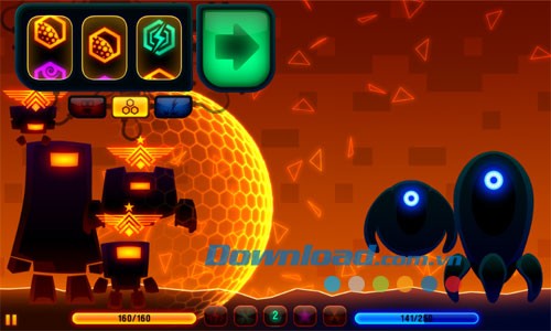 - Tăng cường phòng thủ bằng cách tạo vòng bảo vệ, hoặc "Hack" robot đối phương để chúng chiến đấu cho phe mình.